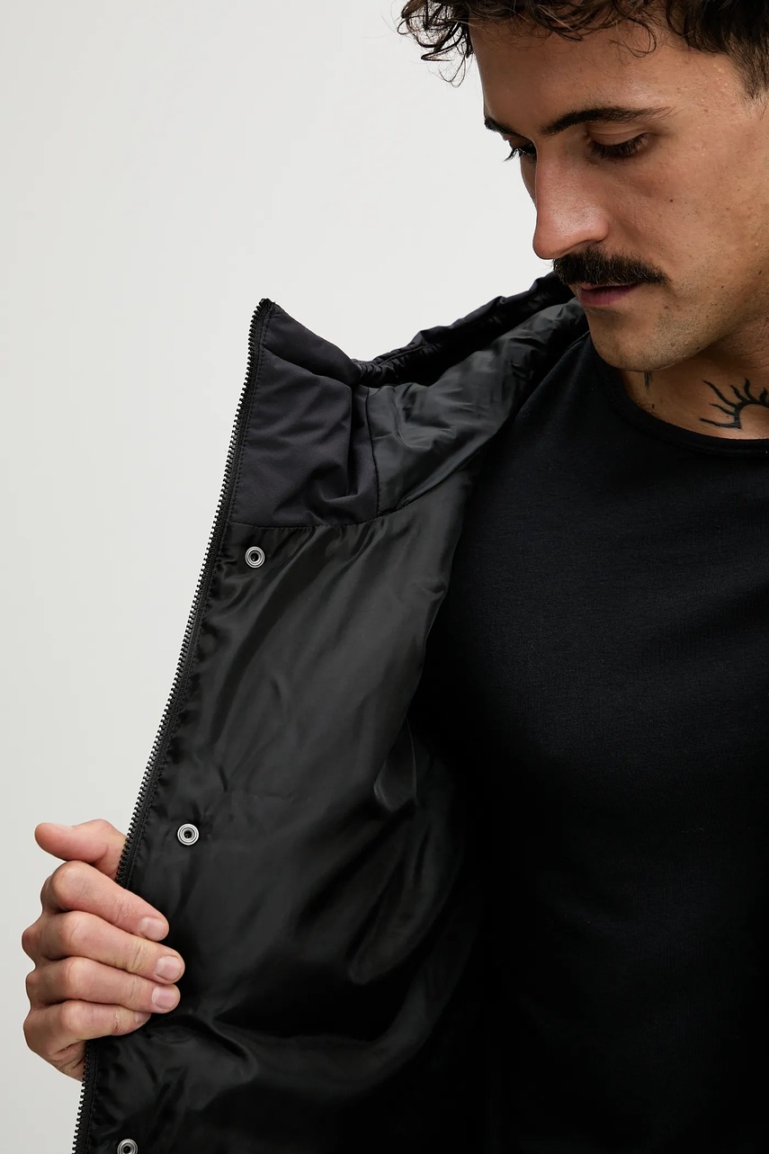 - Podwyższony kołnierz i nieodpinany kaptur gwarantują dodatkową ochronę przed chłodem.