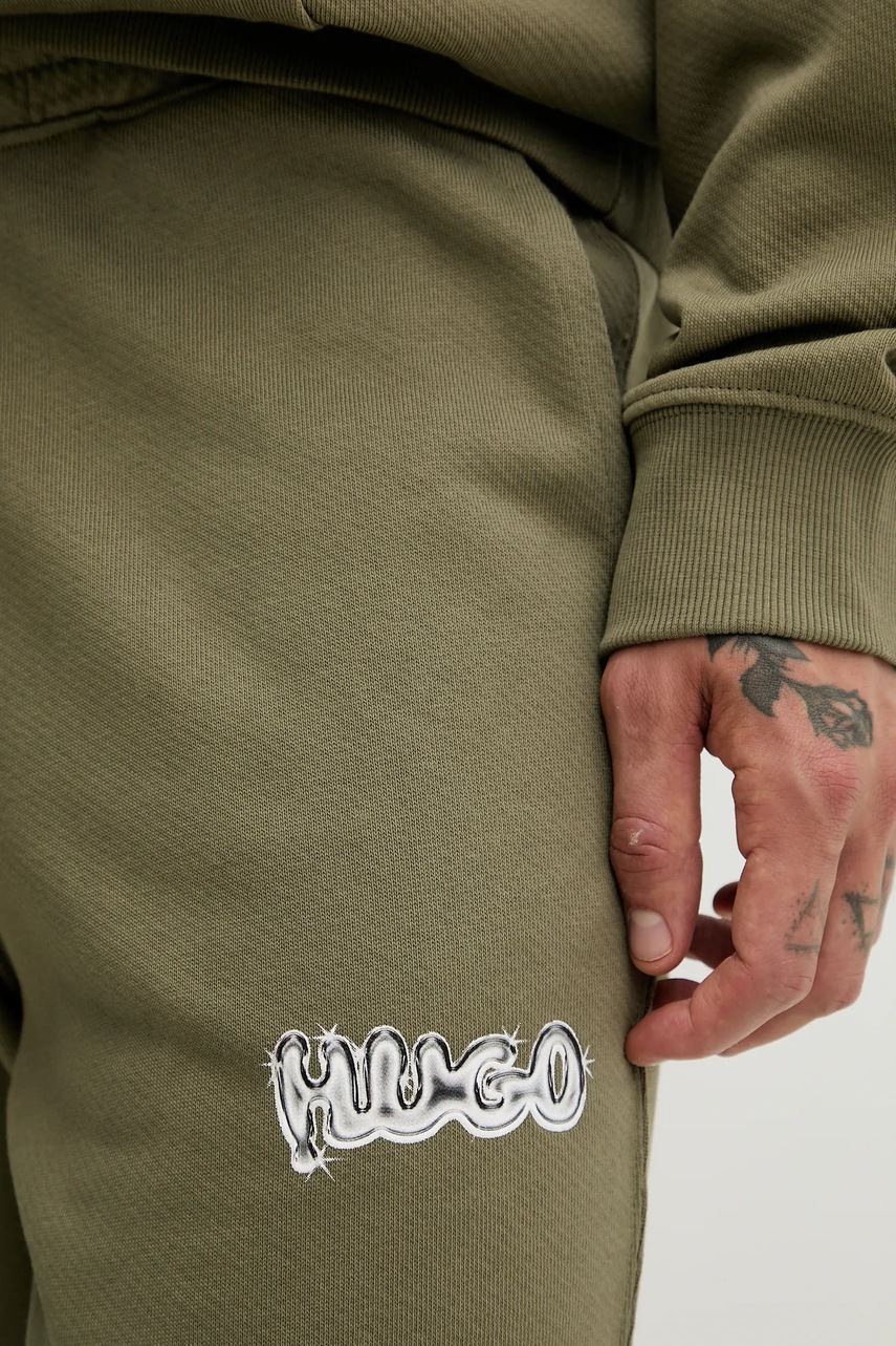 Hugo Blue spodnie dresowe bawełniane męskie kolor zielony z nadrukiem 50549779