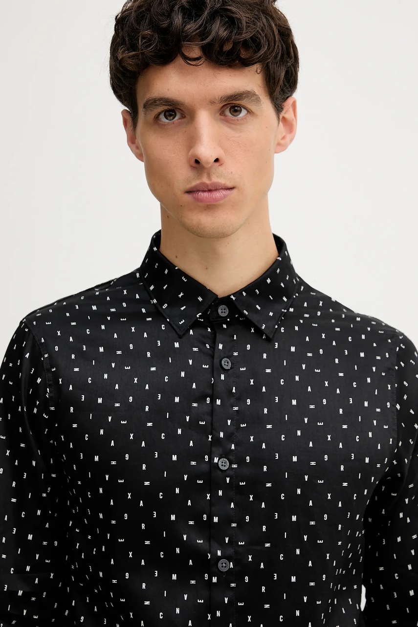 Armani Exchange koszula bawełniana męska kolor czarny regular z kołnierzykiem klasycznym XM001942 AF19194
