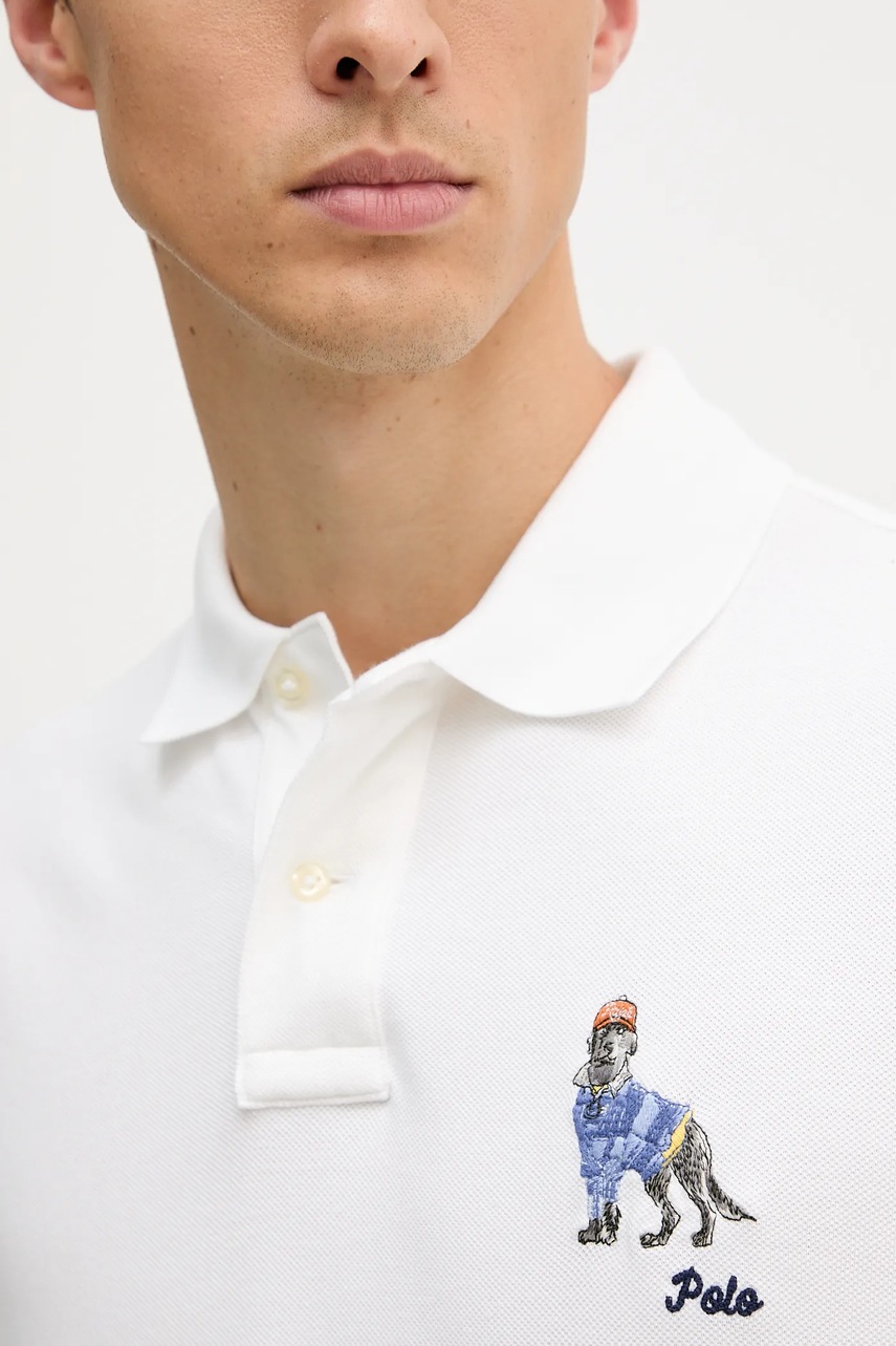 Polo Ralph Lauren polo bawełniane męski kolor biały z aplikacją 710P00095