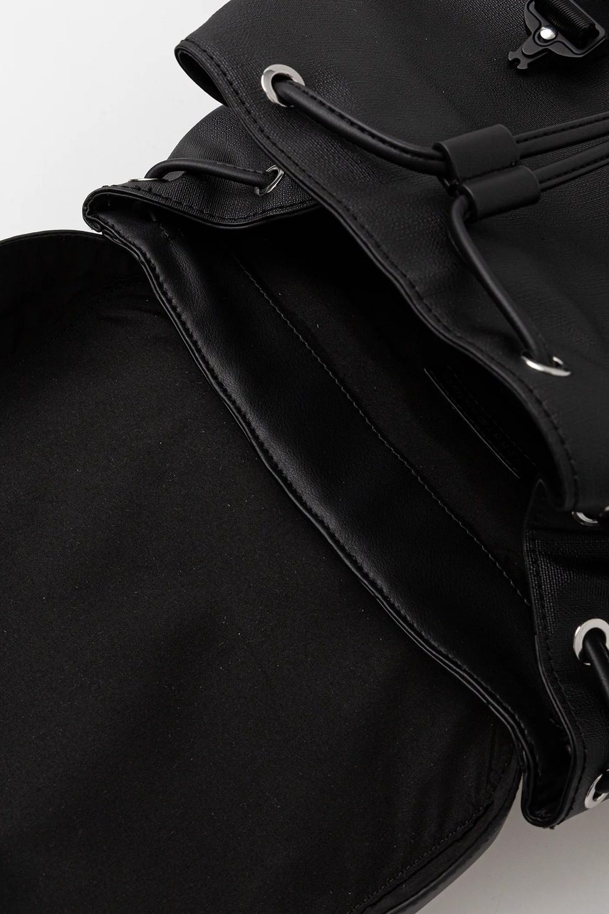- Pasek na tylnym panelu umożliwia zaczepienie plecaka o rączkę walizki.