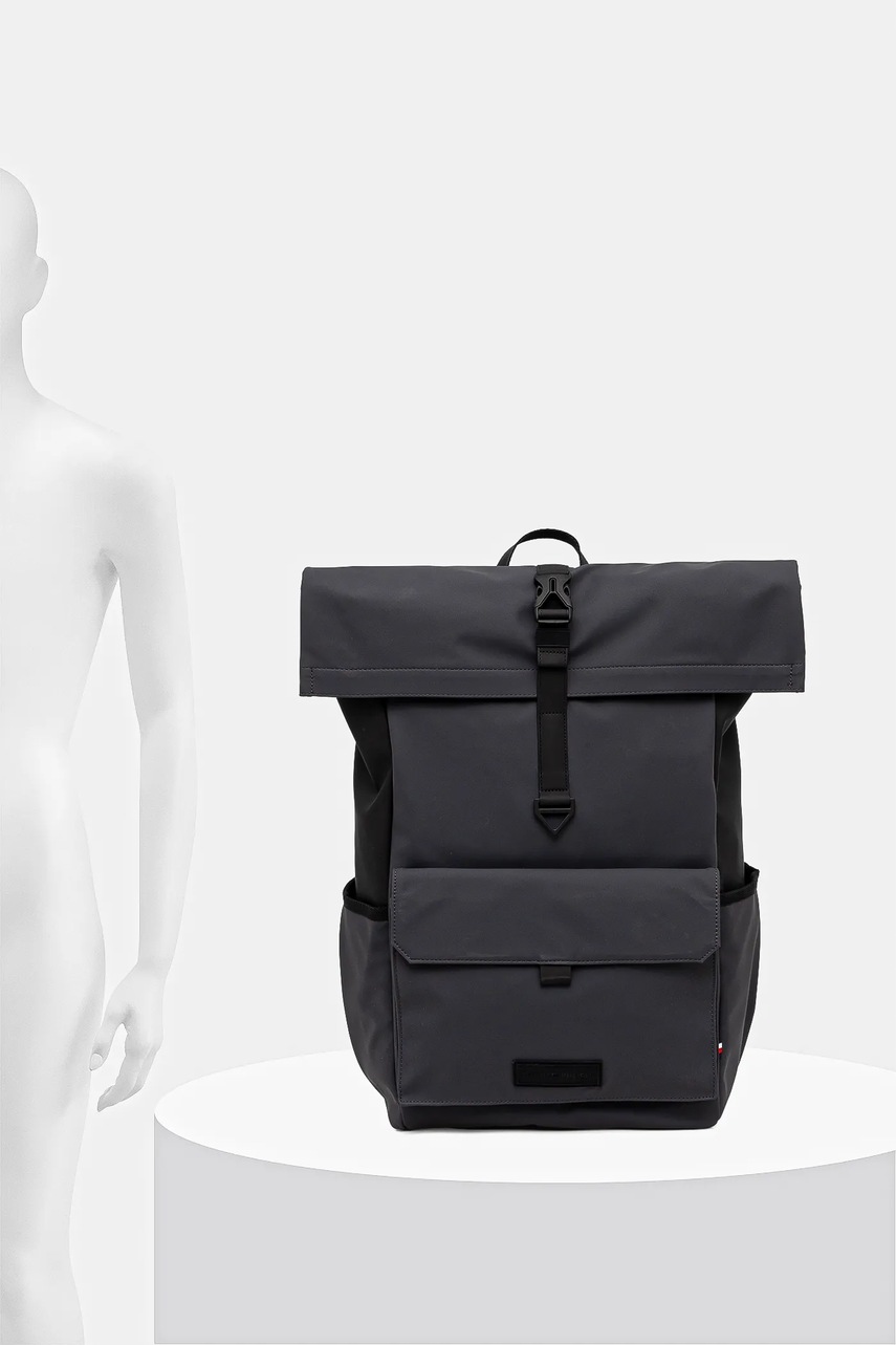 - Rolowana górna krawędź z zapięciem na klamrę maksymalizuje przestrzeń do przechowywania.