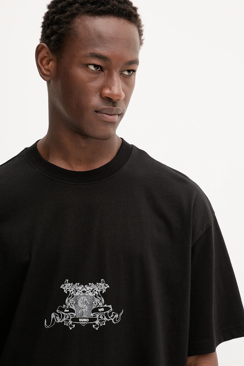 HUGO t-shirt bawełniany męski kolor czarny z nadrukiem 50542817