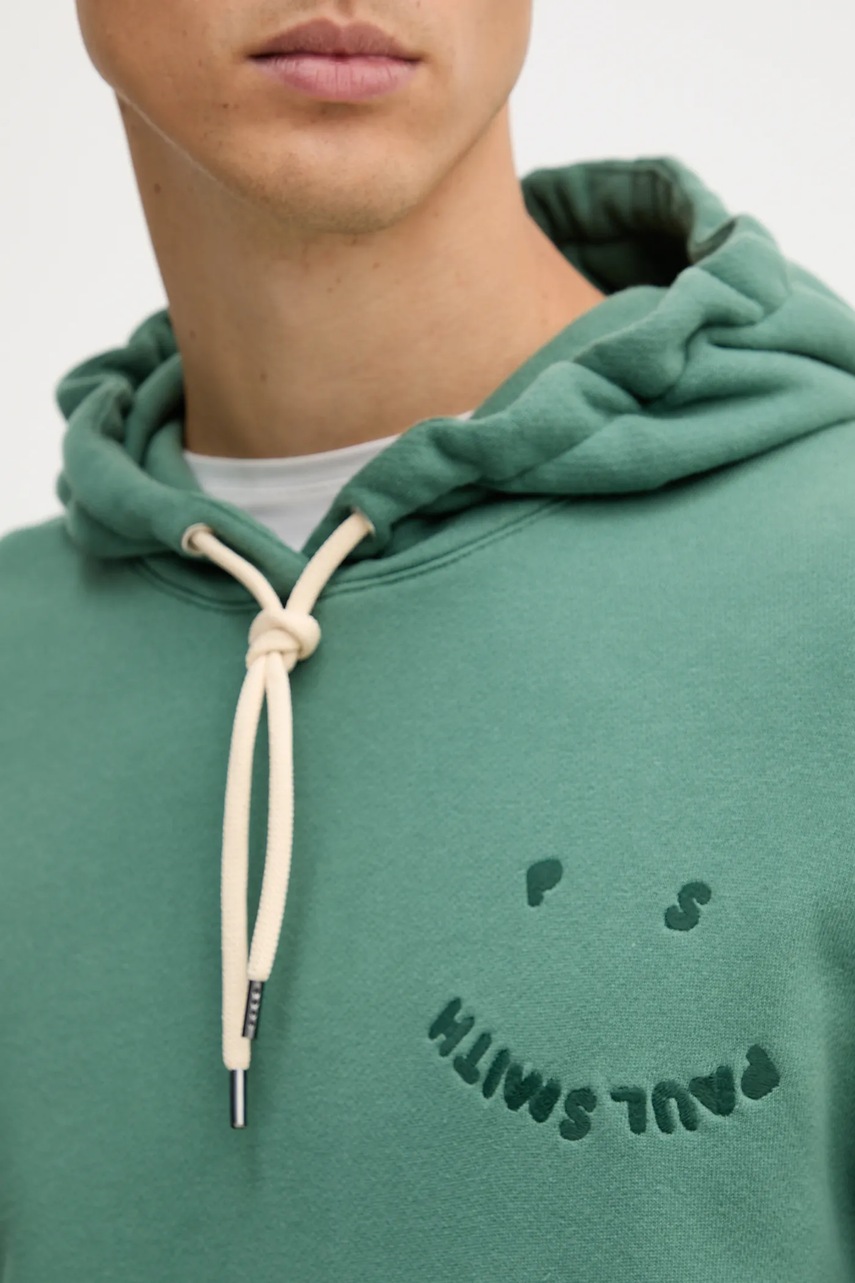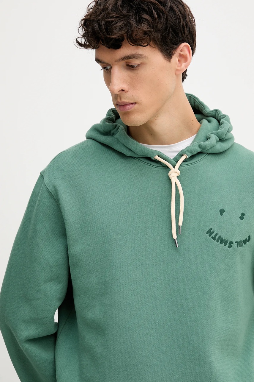 PS Paul Smith bluza bawełniana męska kolor zielony z kapturem z aplikacją M2R-217Z-T22469