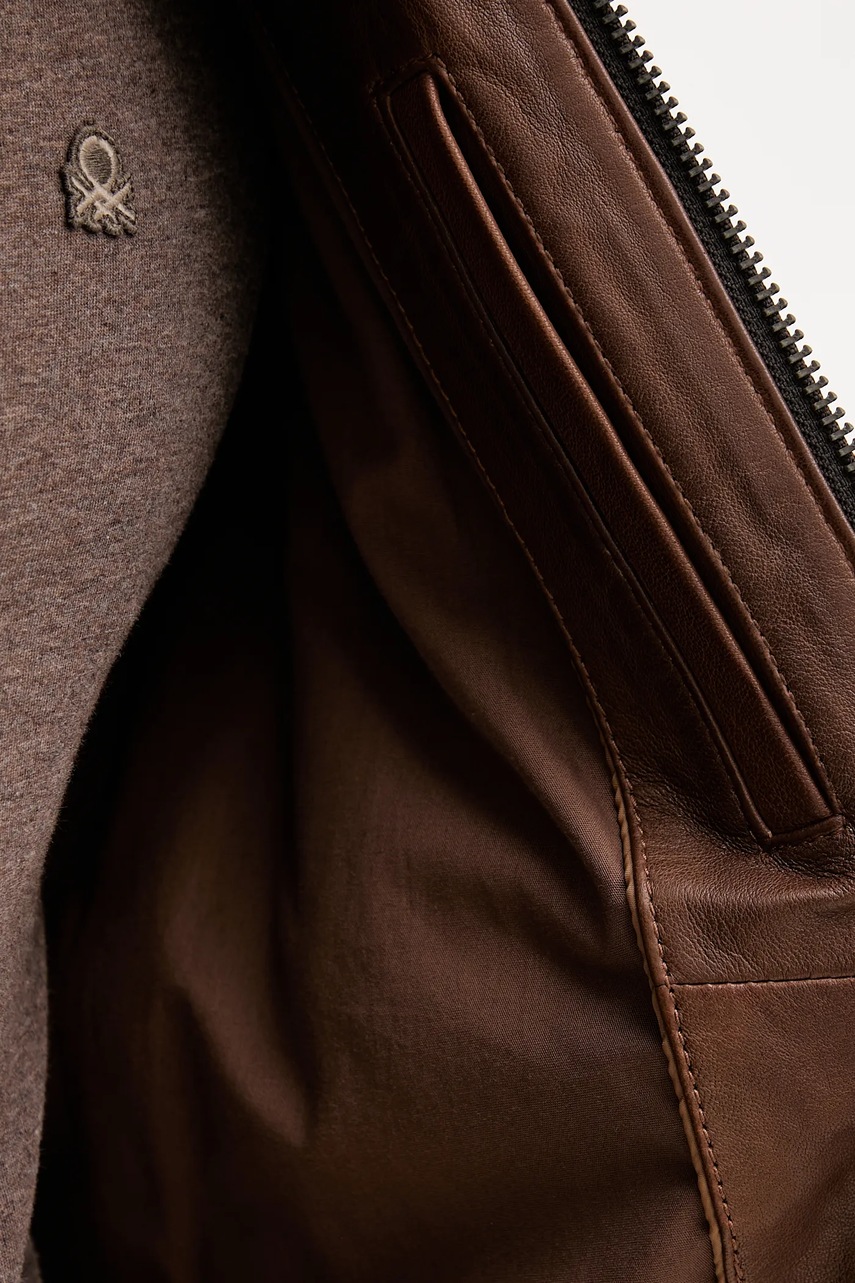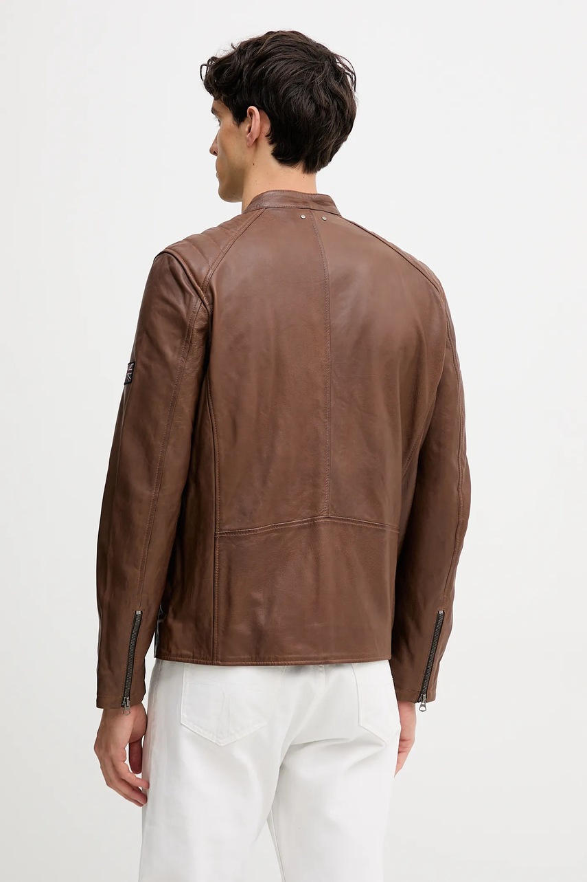 Pepe Jeans kurtka skórzana kolor brązowy przejściowa PM4027178