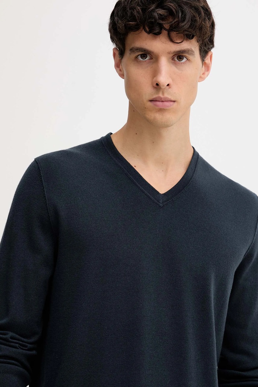 Marc O'Polo sweter wełniany męski kolor granatowy lekki 529506360110