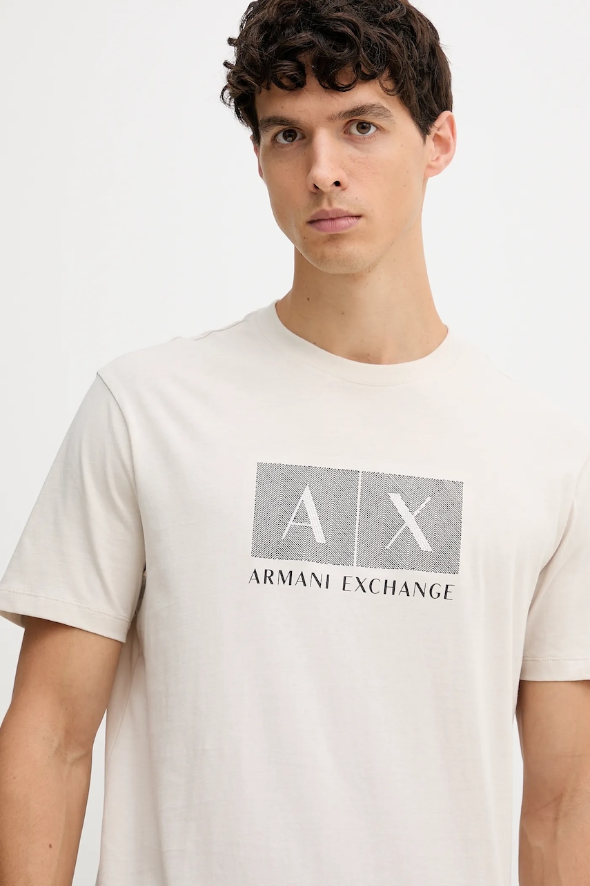 Armani Exchange t-shirt bawełniany męski kolor beżowy z nadrukiem XM001463 AF10356