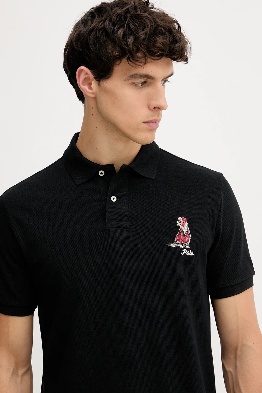 Polo Ralph Lauren polo bawełniane męski kolor czarny z aplikacją 710P00095