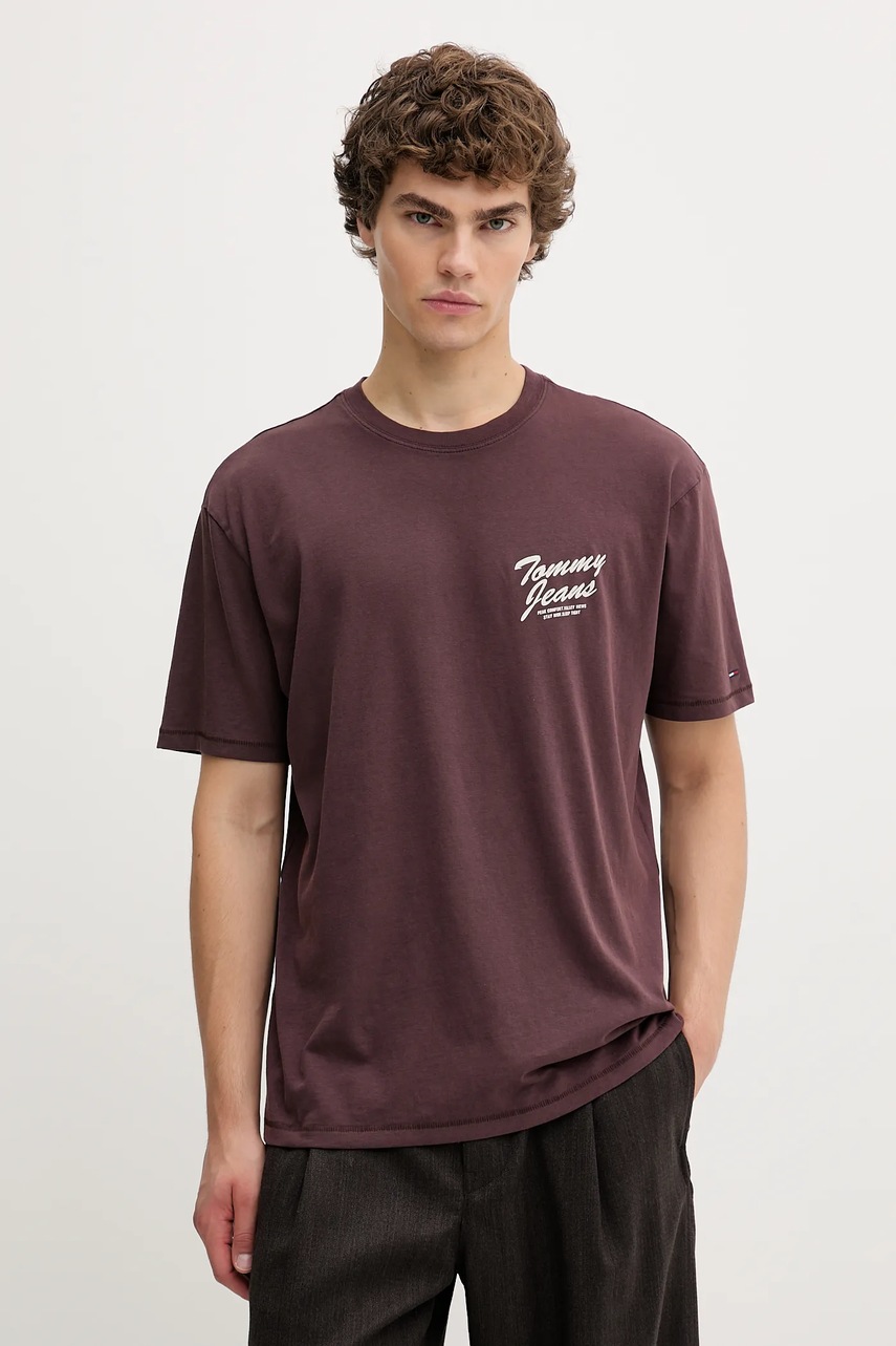 Tommy Jeans t-shirt bawełniany męski kolor brązowy z nadrukiem DM0DM22060