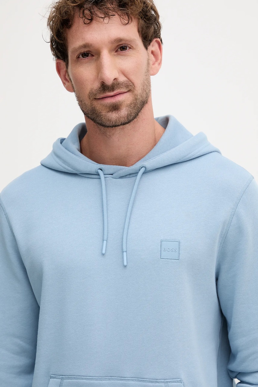 BOSS Orange bluza bawełniana męska kolor niebieski z kapturem gładka 50509314