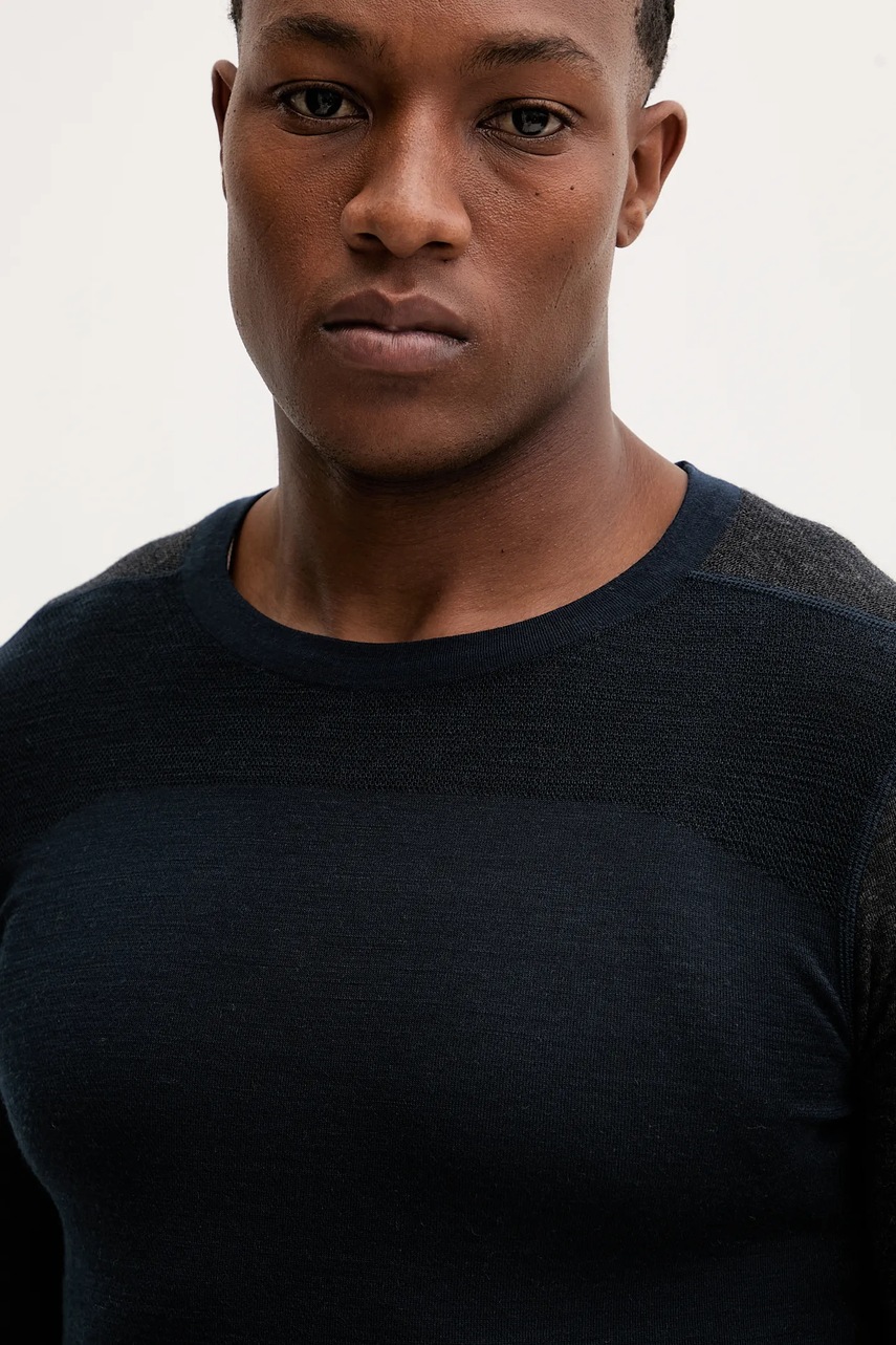 - Model wykonany z materiału łączącego w sobie niezwykle przyjemną dla skóry, antybakteryjną wełnę merynosów i włókna poliestru. Dzięki takiemu połączeniu materiał jest oddychający, odprowadzający wilgoć, pomaga utrzymać odpowiednią temperaturę ciała, a jednocześnie jest niezwykle wytrzymały.
