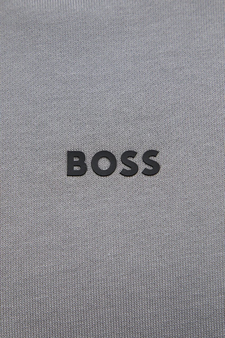 BOSS Orange bluza bawełniana męska kolor szary z kapturem z nadrukiem