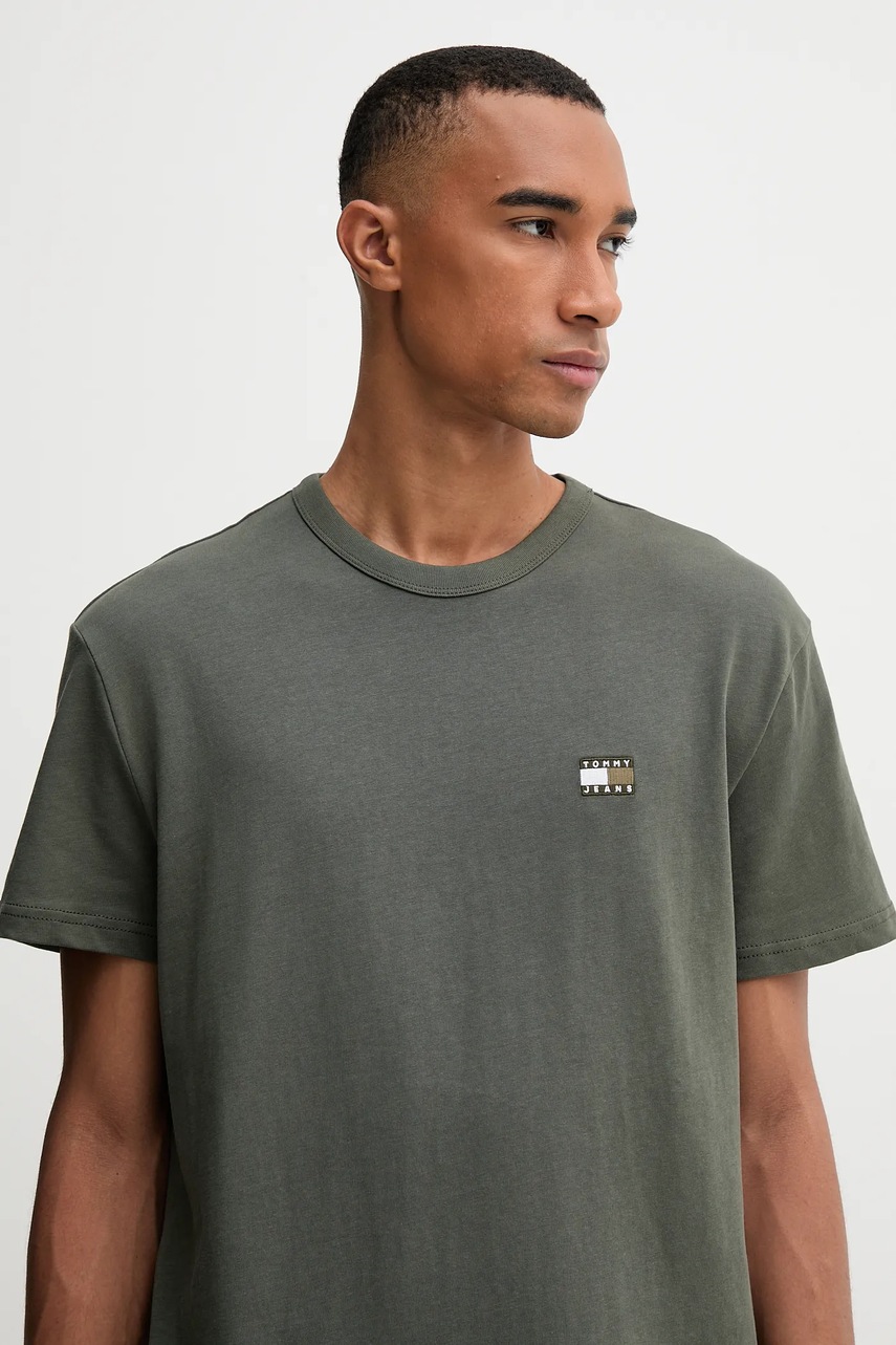 Tommy Jeans t-shirt bawełniany męski kolor zielony gładki DM0DM20322