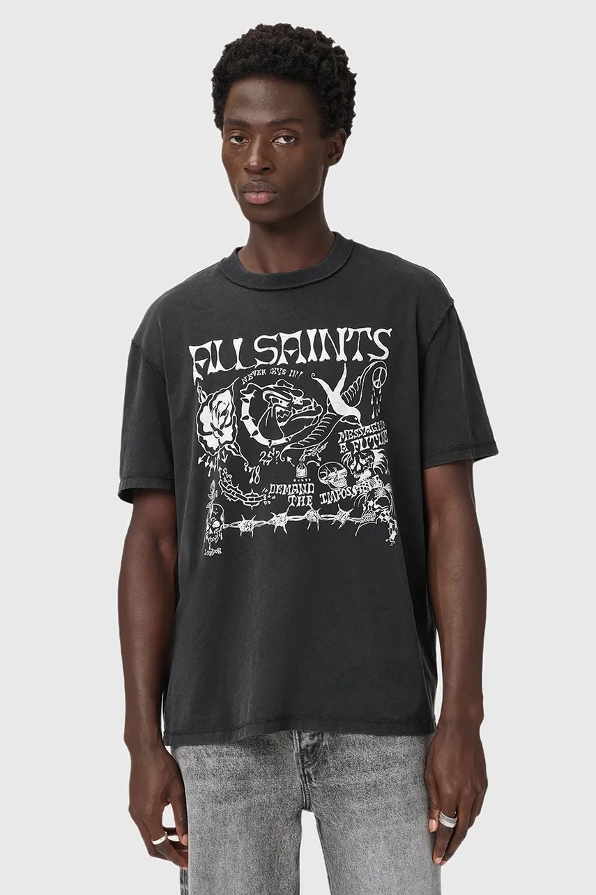 AllSaints t-shirt bawełniany CHINGFORD męski kolor szary z nadrukiem M002PD