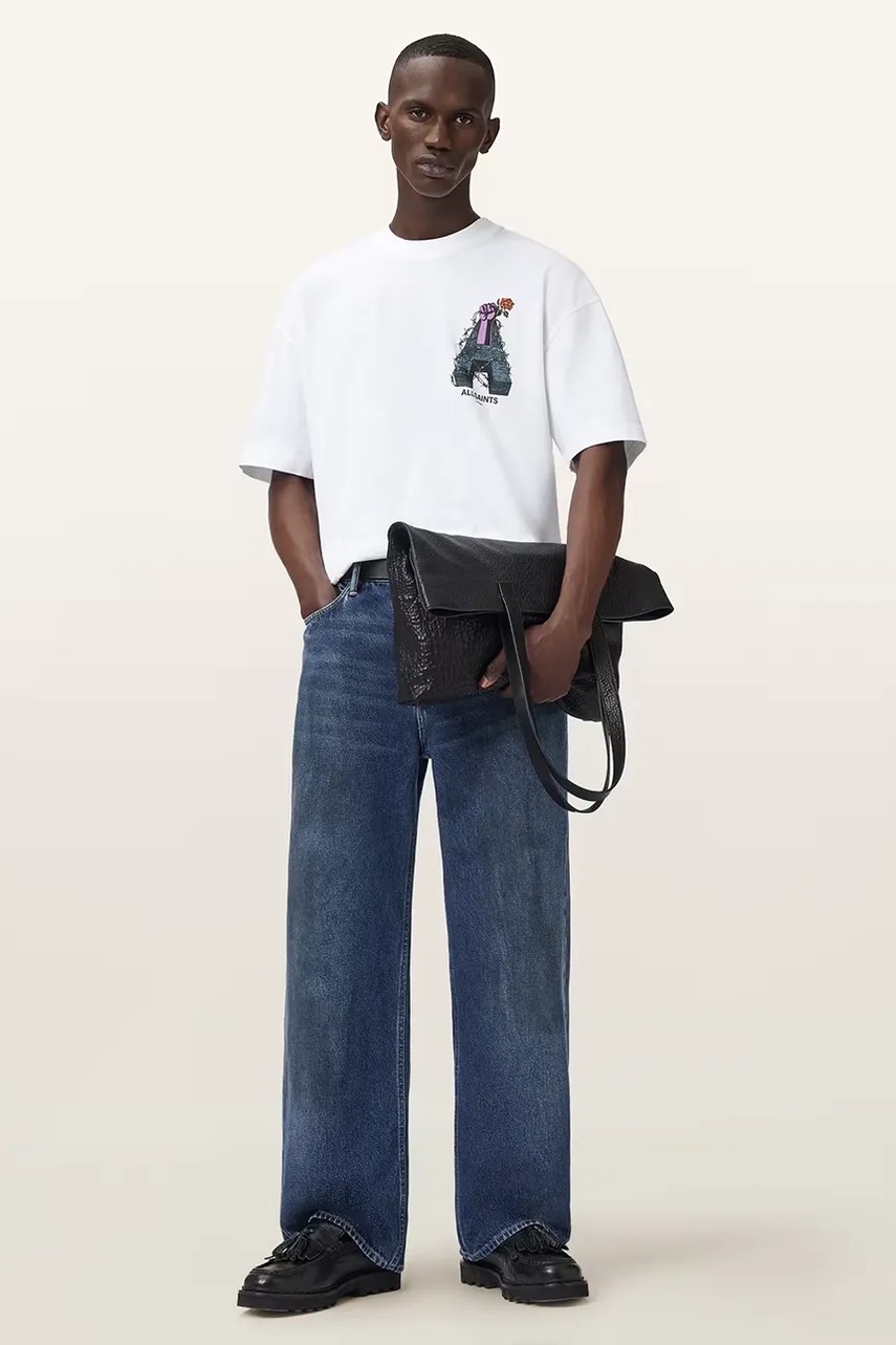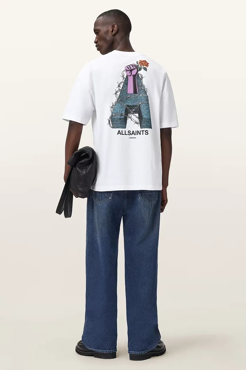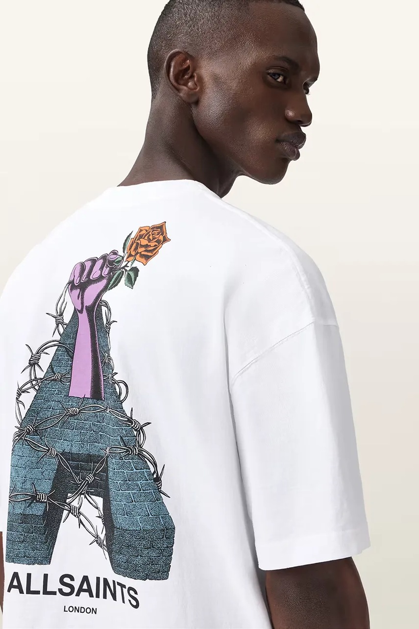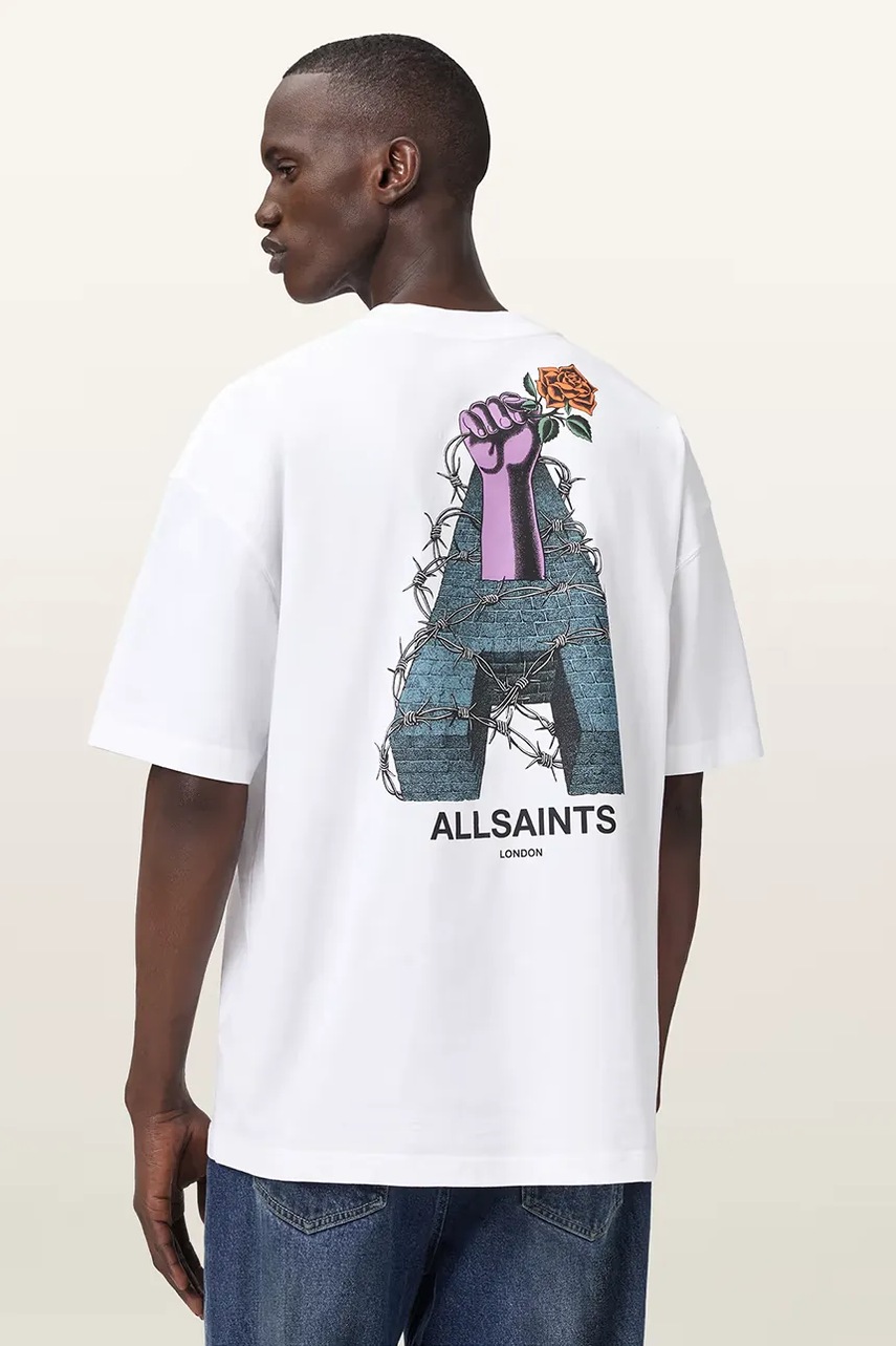 AllSaints t-shirt bawełniany DEFIANCE męski kolor biały z nadrukiem M004PD