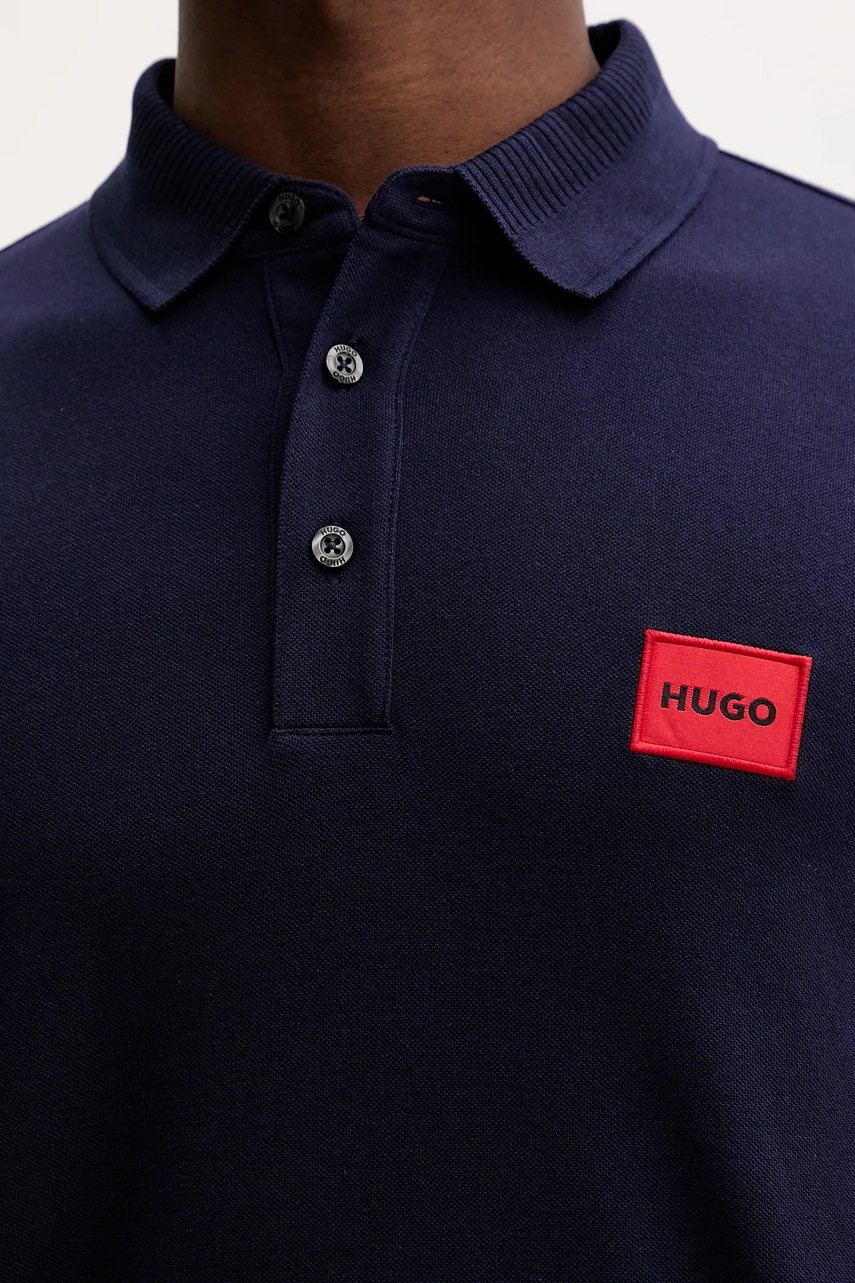 HUGO polo bawełniane kolor granatowy z aplikacją