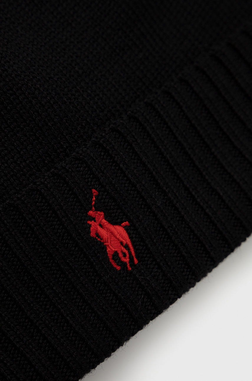 Polo Ralph Lauren czapka wełniana kolor czarny z cienkiej dzianiny wełniana