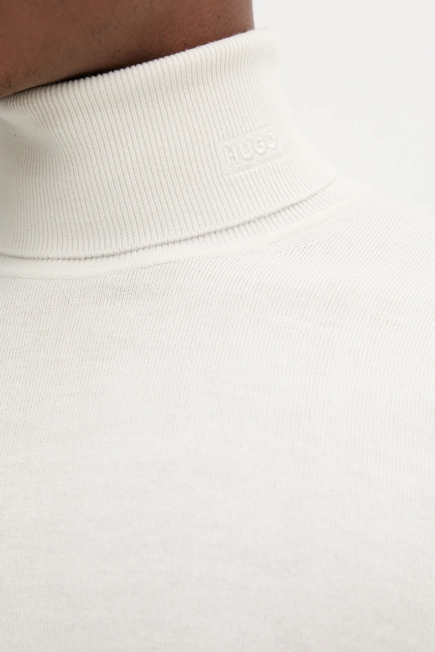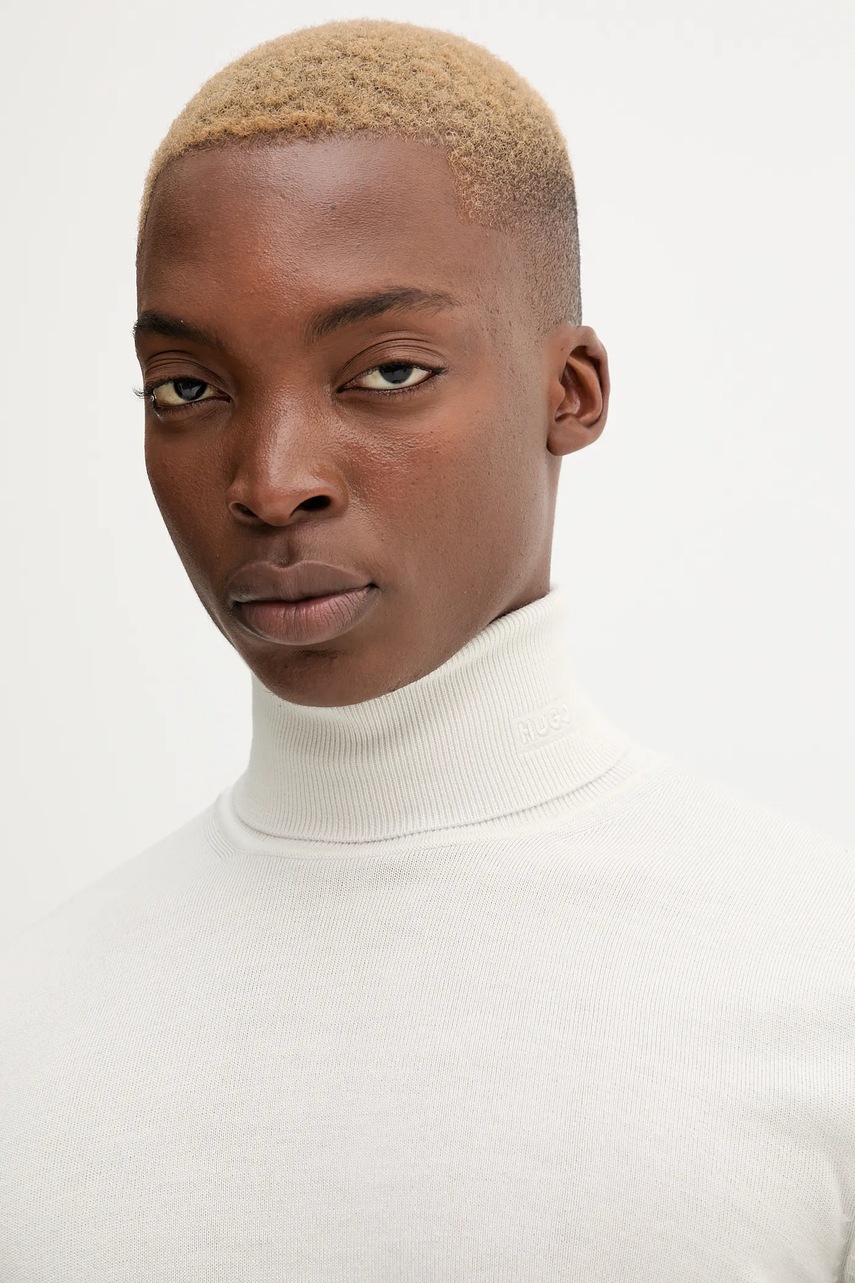 HUGO sweter wełniany męski kolor beżowy lekki z golferm