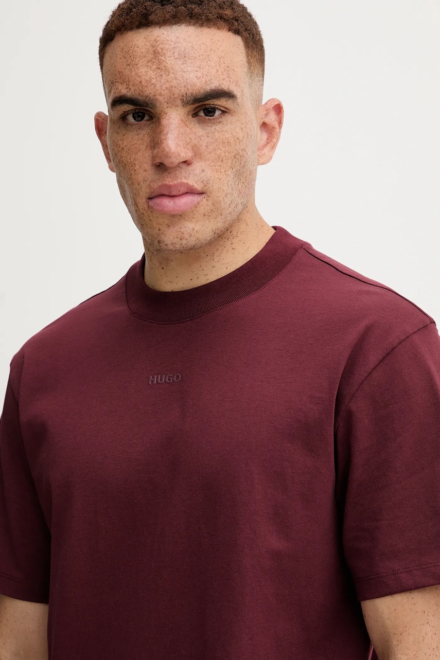 HUGO t-shirt bawełniany męski kolor bordowy gładki 50488330