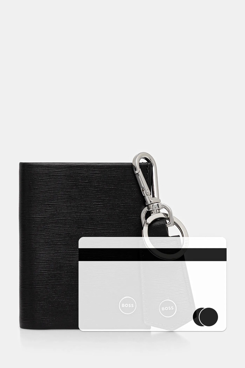BOSS portfel skórzany + brelok męski kolor czarny 50552891