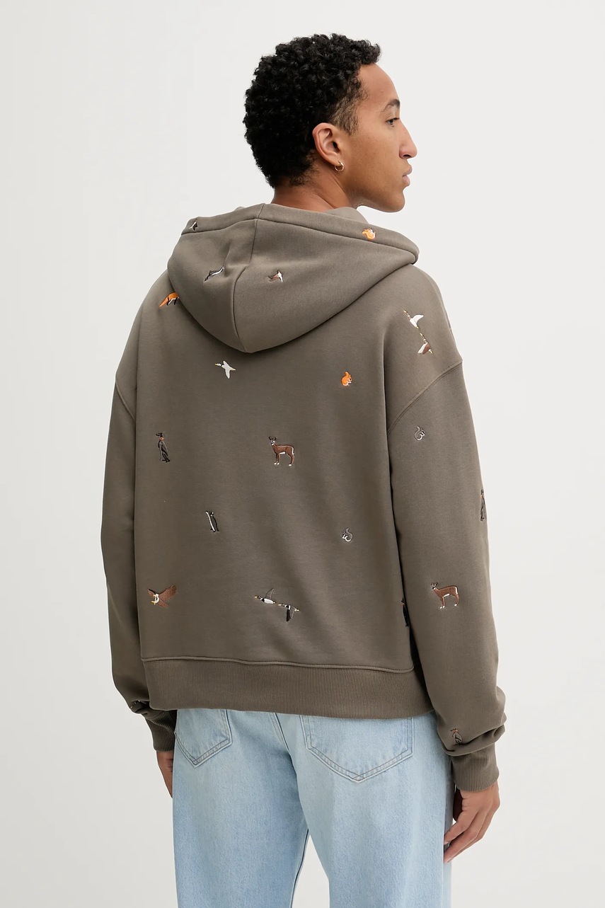 HUGO bluza bawełniana męska kolor brązowy z kapturem z aplikacją 50549136