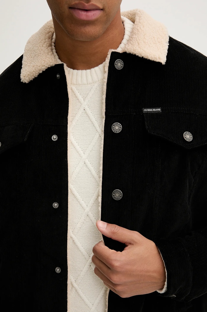 Guess Jeans kurtka sztruksowa kolor czarny przejściowa M5BL1F W2061