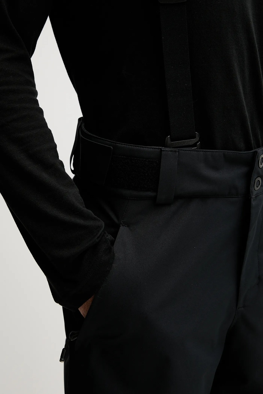 - Dolne krawędzie nogawek wykończone elastycznymi, podgumowanymi ściągaczami, co pozwala zapobiec przedostawaniu się do wnętrza zimna i śniegu.