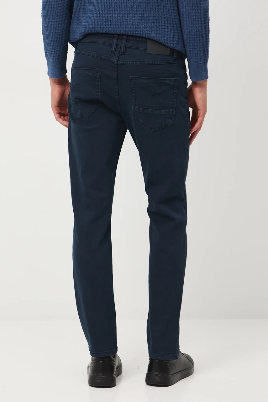 - Model z regularną talią i zapięciem na guzik i suwak.