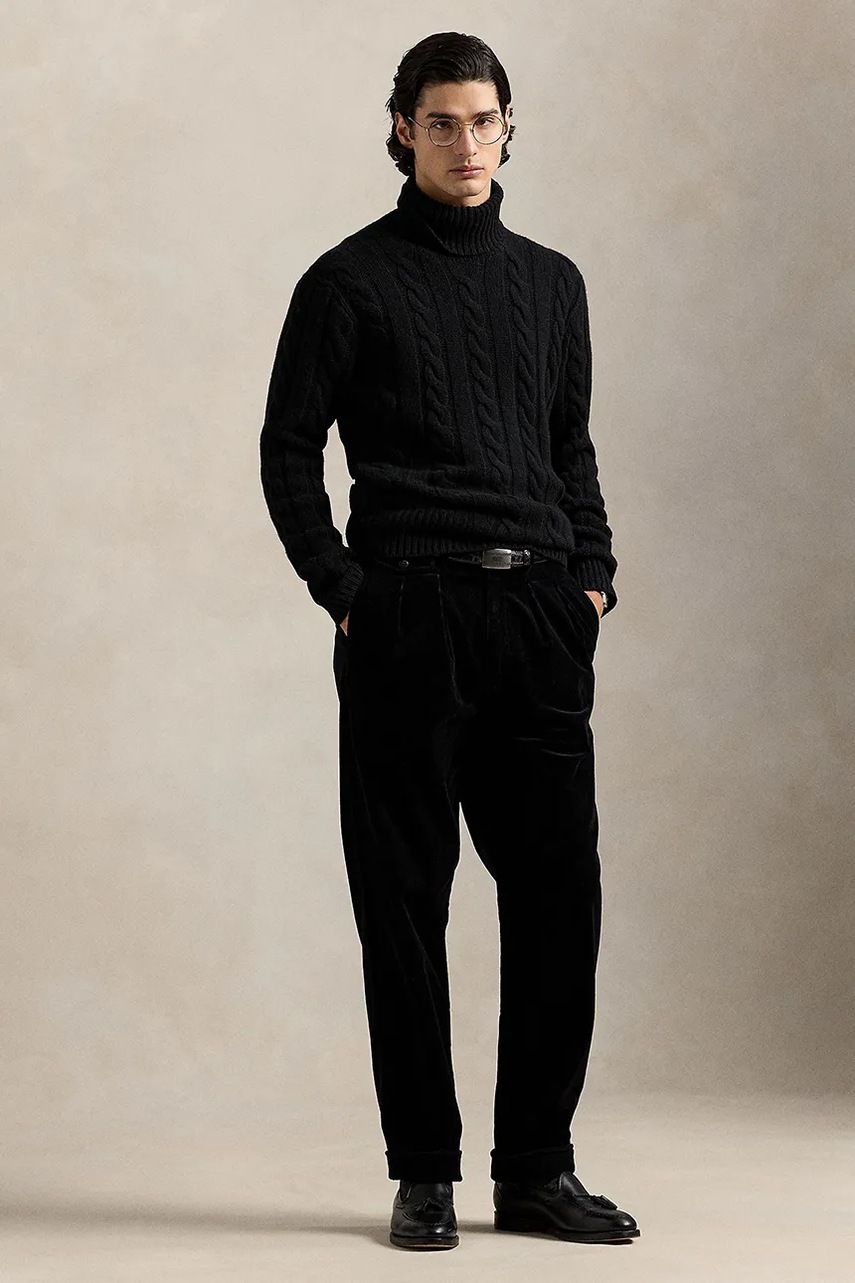 Polo Ralph Lauren sweter wełniany męski kolor czarny ciepły z golferm 710917035