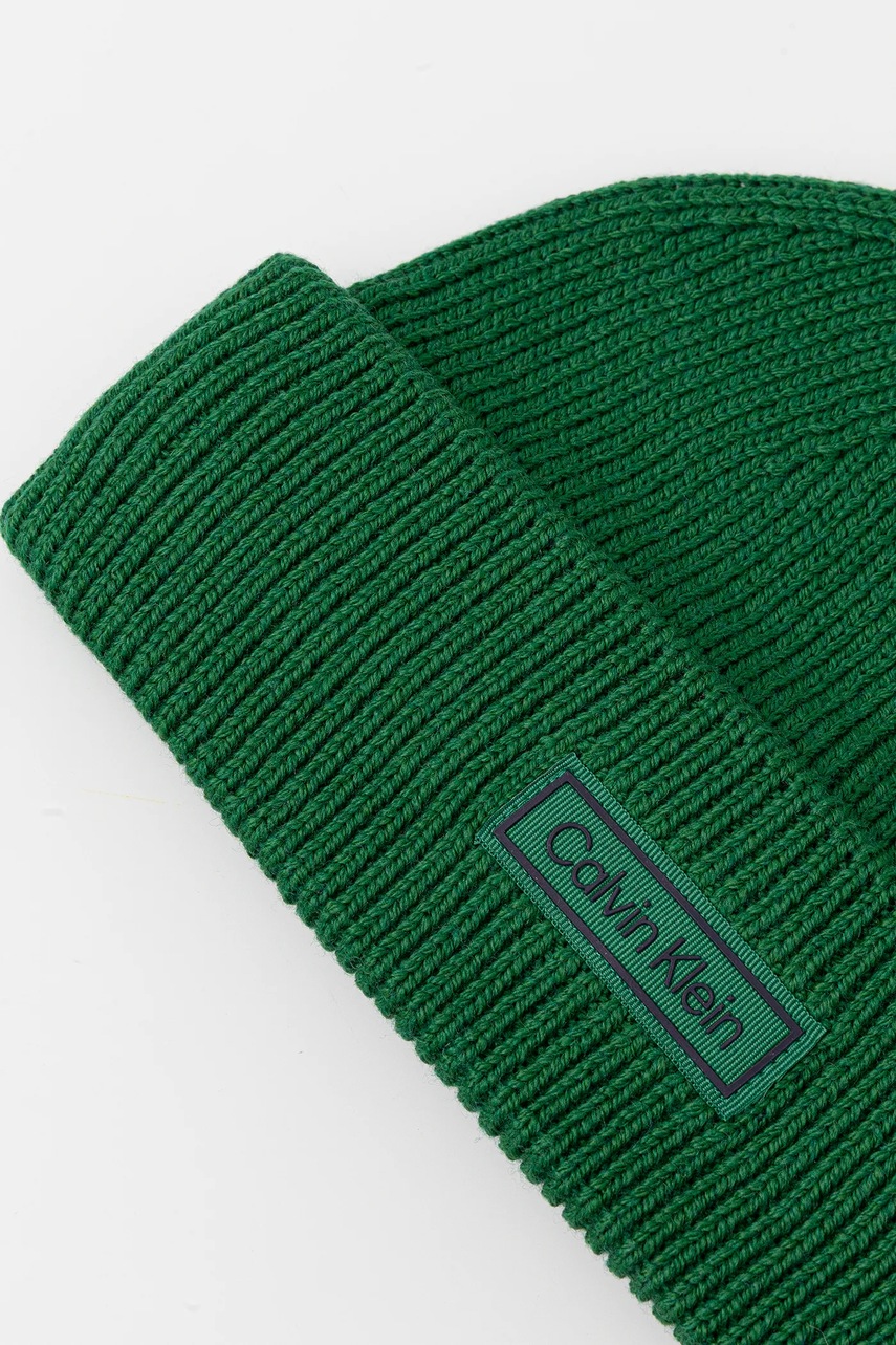 Calvin Klein czapka z dodatkiem wełny kolor zielony LV04D8058G
