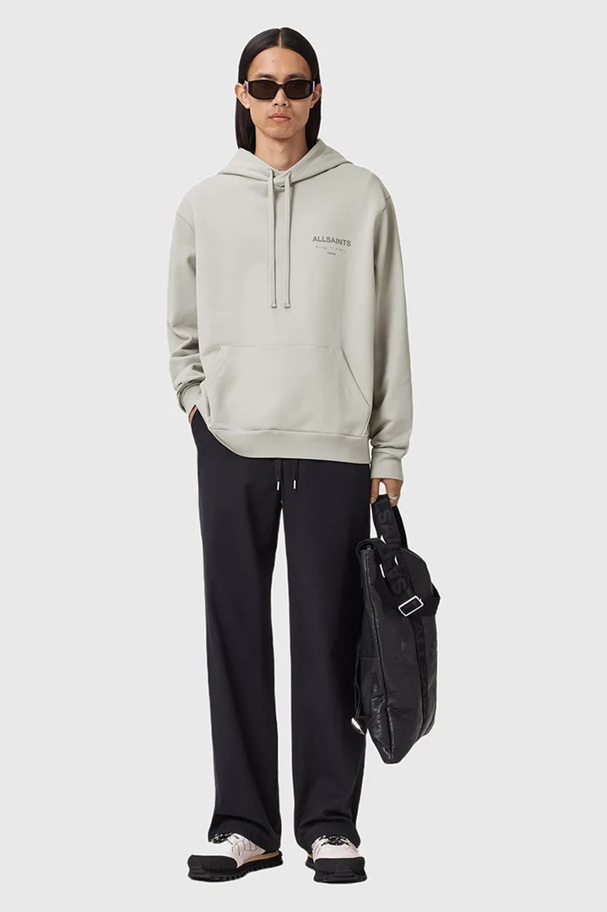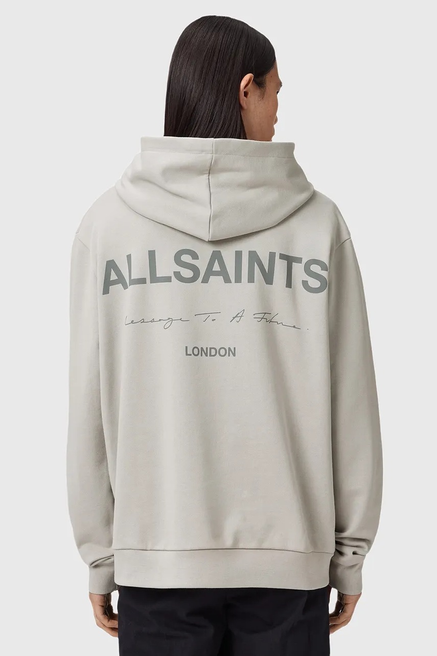AllSaints bluza bawełniana FUTURE męska kolor szary z kapturem wzorzysta M002ND