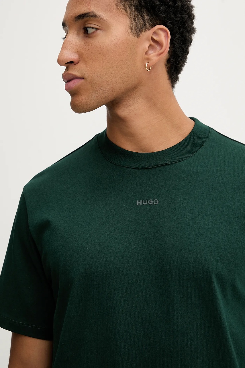 HUGO t-shirt bawełniany męski kolor zielony gładki 50488330