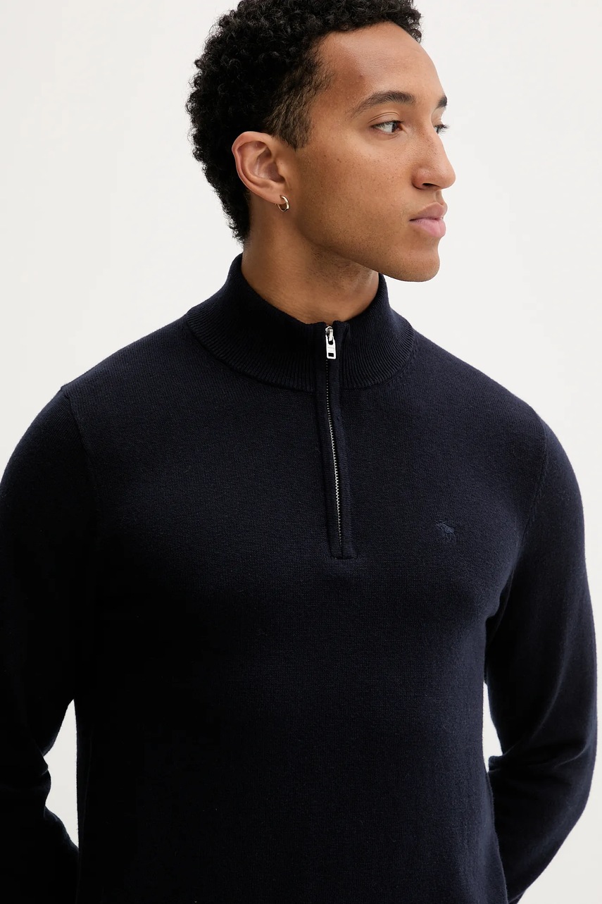 Abercrombie & Fitch sweter z dodatkiem wełny męski kolor granatowy lekki z półgolfem KI120-5139-200