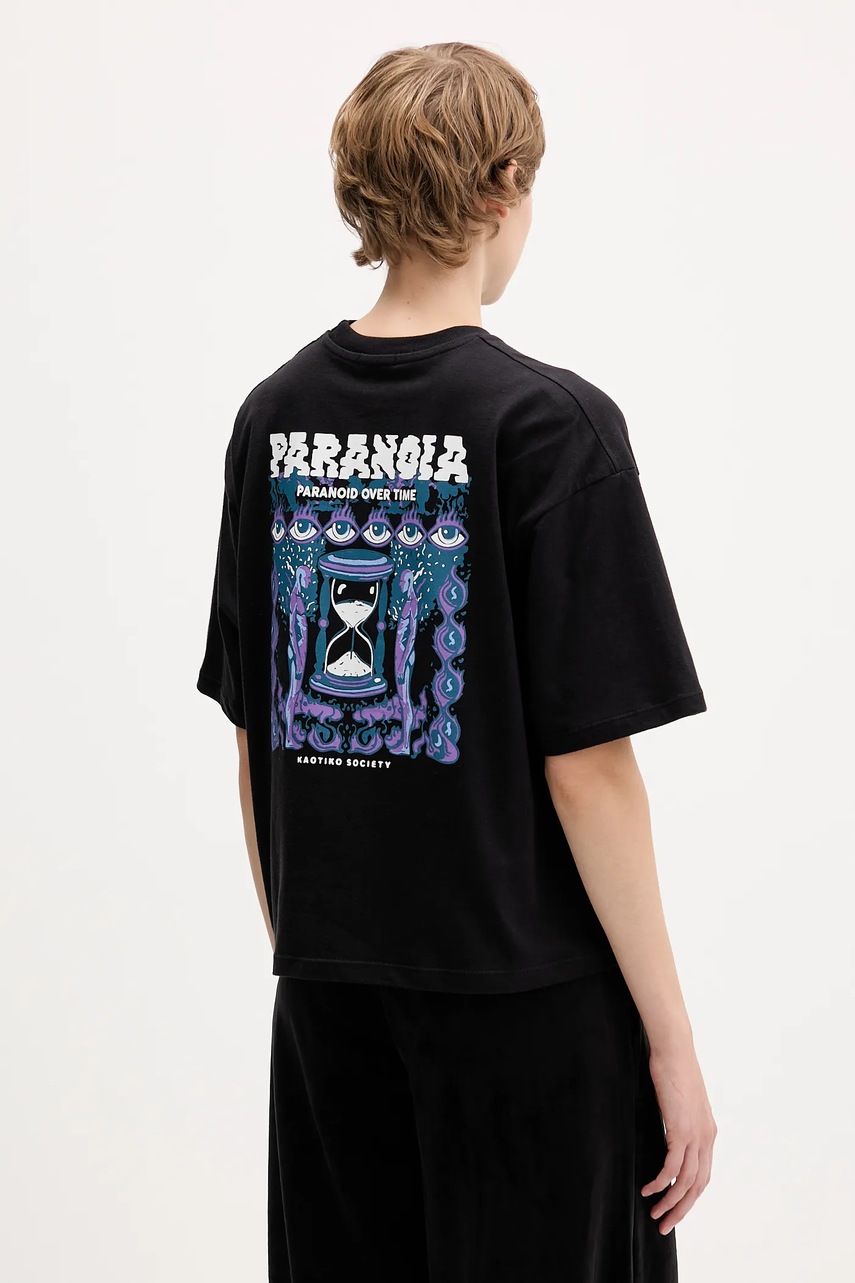Kaotiko t-shirt bawełniany kolor czarny z nadrukiem AR018-01-M002