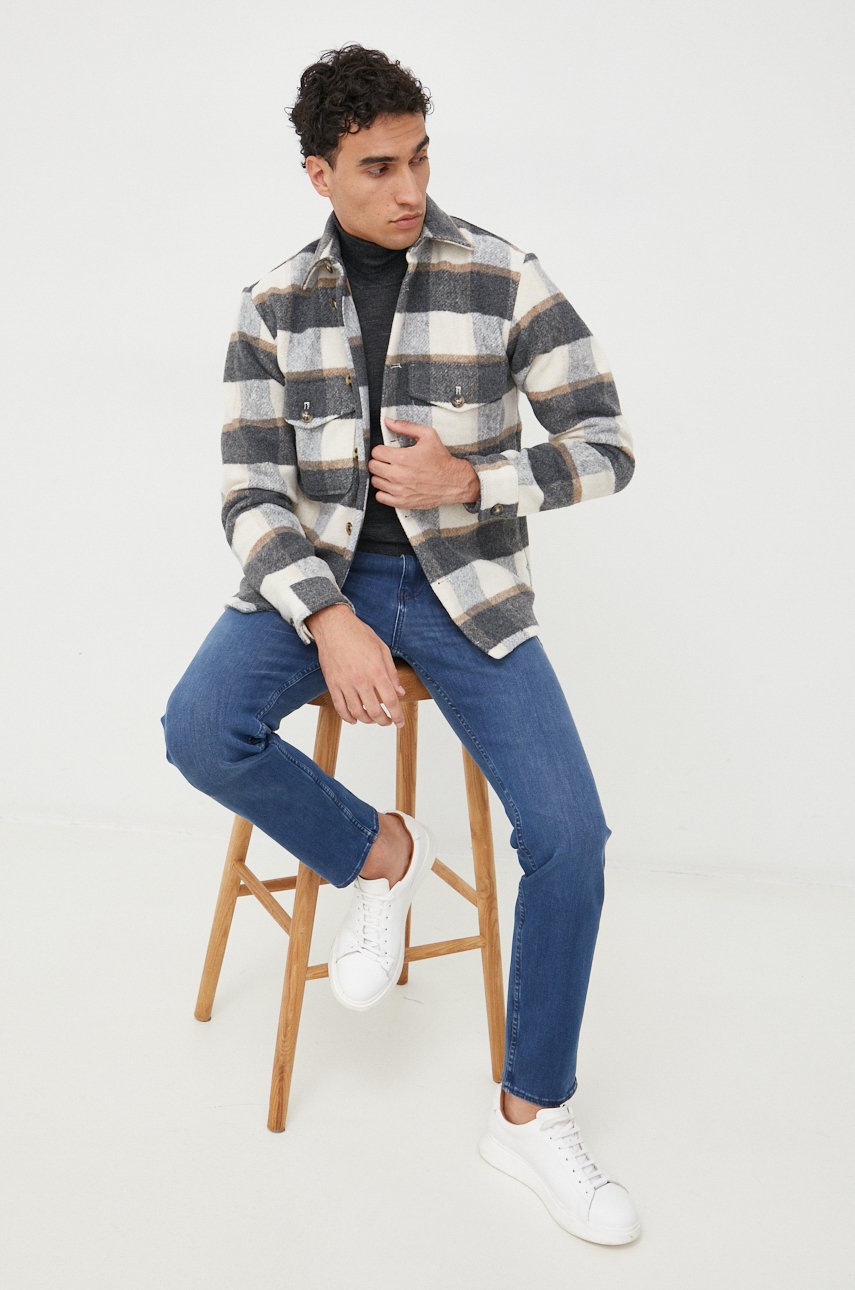 BOSS sweter wełniany męskie kolor szary lekkie z golferm 50468262