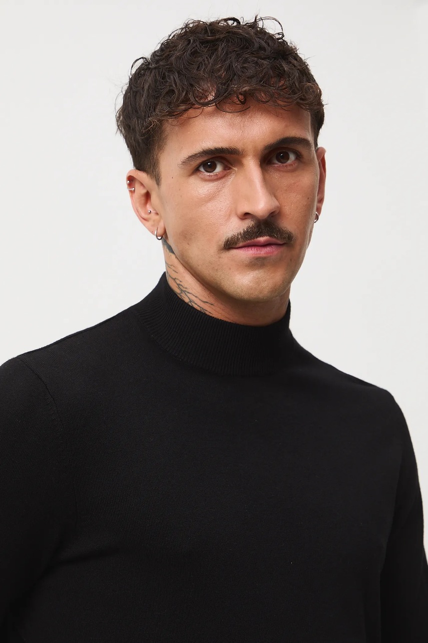 Medicine sweter męski kolor czarny lekki z półgolfem