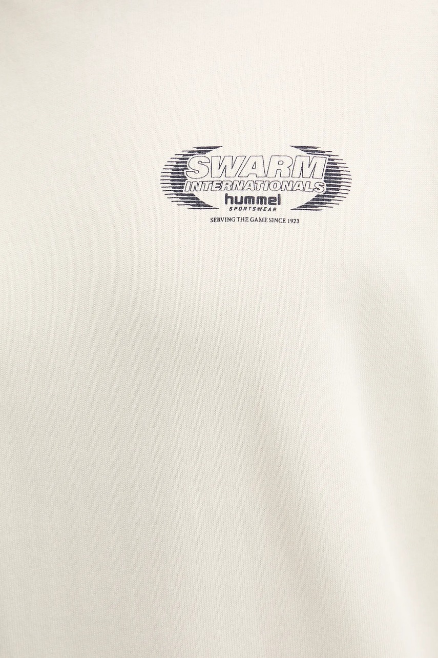Hummel t-shirt bawełniany męski kolor beżowy z nadrukiem 230029