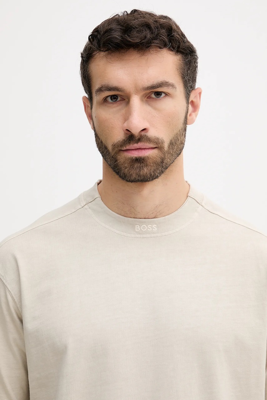 BOSS Orange t-shirt bawełniany męski kolor beżowy gładki 50521805