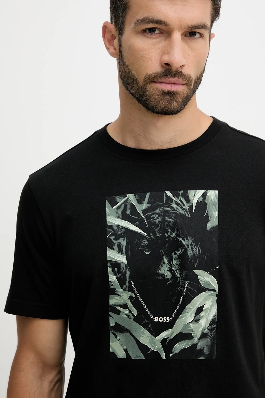 BOSS Orange t-shirt bawełniany męski kolor czarny z nadrukiem 50546362