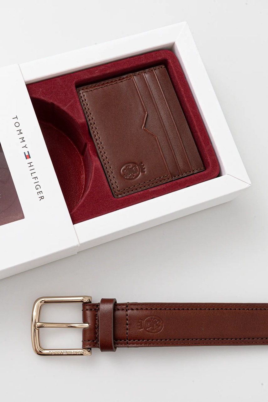 Tommy Hilfiger pasek i etui na karty skórzane kolor brązowy AM0AM13934