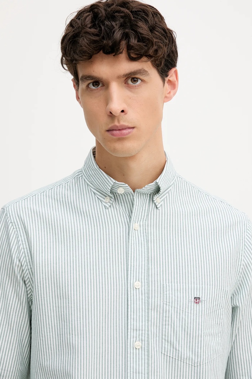 Gant koszula bawełniana męska kolor zielony regular z kołnierzykiem button-down 3000230