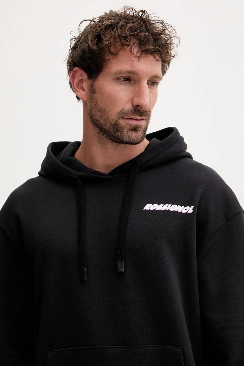 Rossignol bluza bawełniana WATERFALL RELAX męska kolor czarny z kapturem wzorzysta RLOMS02