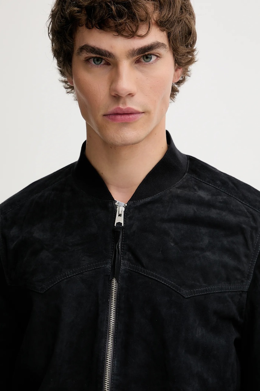 AllSaints kurtka bomber zamszowa ZEALAND kolor czarny przejściowa M035LD