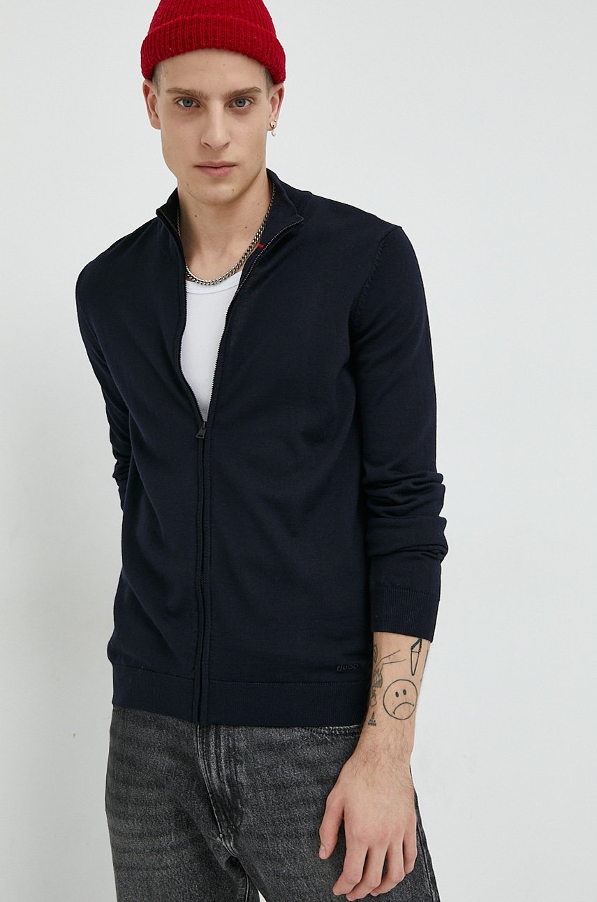 HUGO kardigan wełniany kolor granatowy