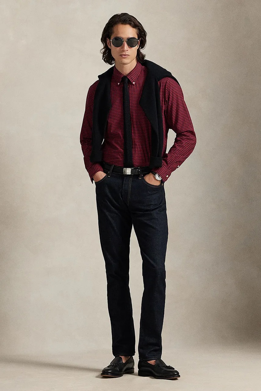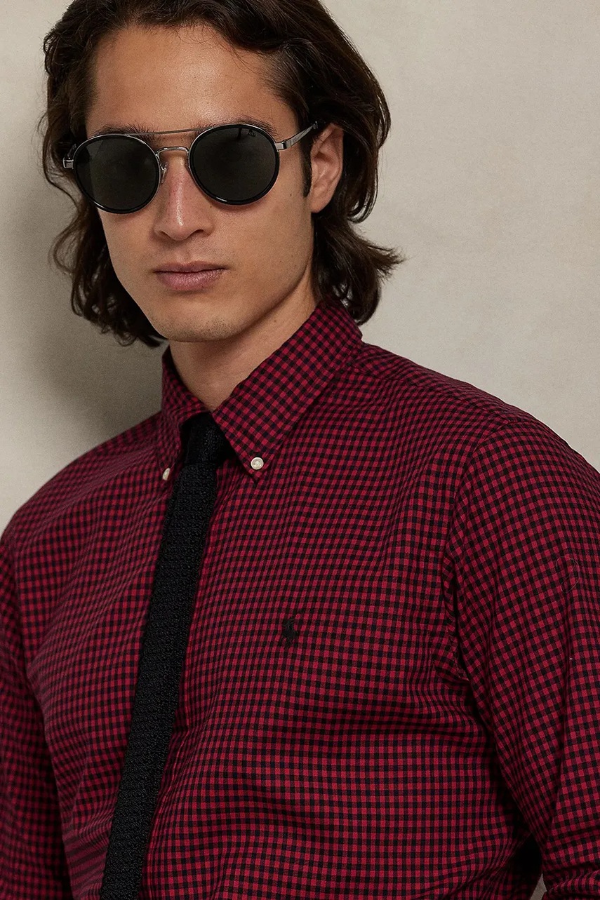 Polo Ralph Lauren koszula bawełniana męska kolor bordowy regular z kołnierzykiem button-down 710953644