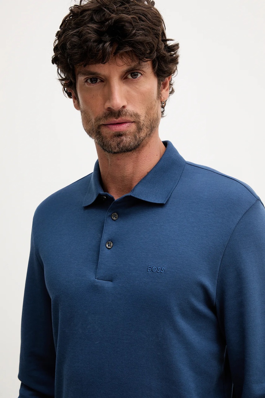BOSS longsleeve bawełniany kolor niebieski gładki 50468392