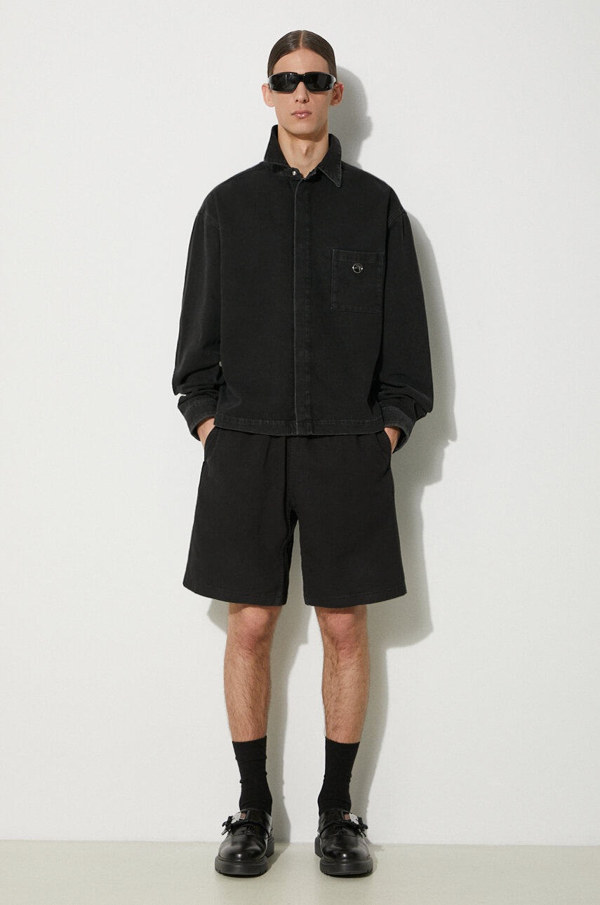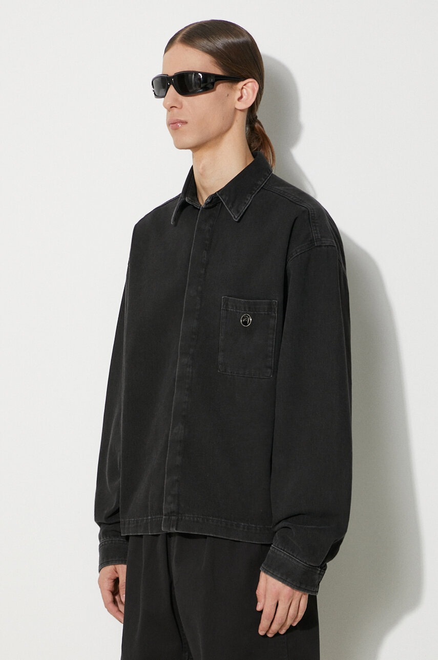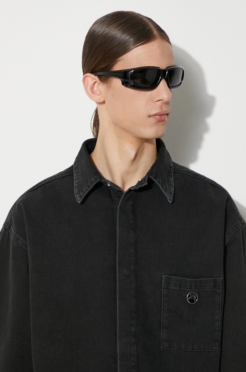 AMBUSH koszula bawełniana Boxy Fit Longleeve Denim Shirt męska kolor czarny relaxed z kołnierzykiem klasycznym BMYD002S24DEN