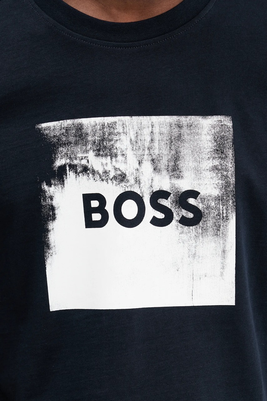 BOSS Orange t-shirt bawełniany męski kolor granatowy z nadrukiem 50546381