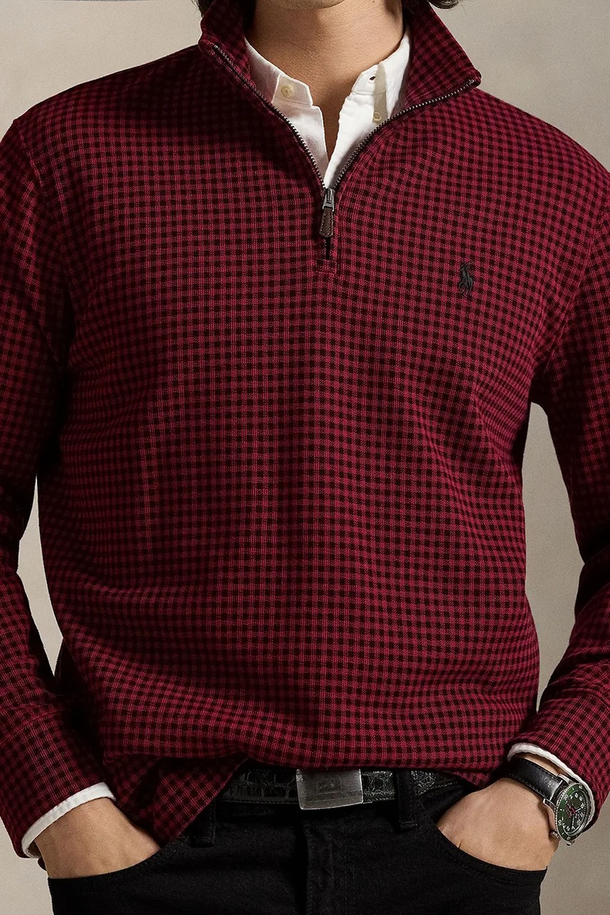 Polo Ralph Lauren sweter bawełniany męski kolor bordowy z półgolfem 710981460