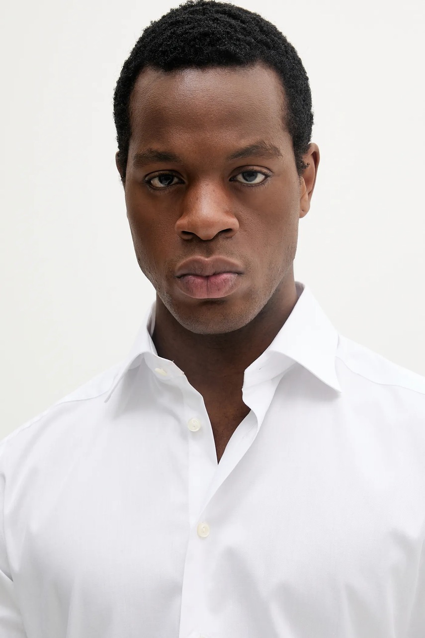 Eton koszula bawełniana męska kolor biały slim z kołnierzykiem klasycznym 100012342